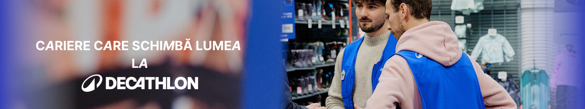Am adunat în jurul nostru oameni fantastici, pasionați de sport, plini de viață și astfel am creat un mediu de lucru deschis, în care le oferim colegilor noștri tot sprijinul necesar pentru dezvoltarea lor personală și profesională. Suntem constant în căutare de noi coechipieri care să aducă valoare companiei, care să provoace modul în care lucrăm astăzi și să ajungă liderii Decathlon de mâine.